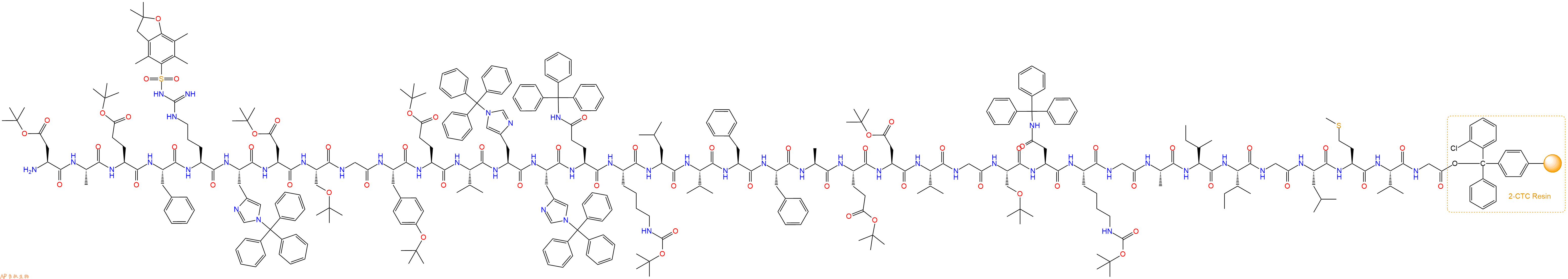 Fmoc-Arg(Pbf)-His(Trt)-Asp(OtBu)-Ser(tBu)-Gly-Tyr(tBu)-Glu(OtBu)-Val-His(Trt)-His(Trt)-Gln(Trt)-Lys(Boc)-Leu-Val-Phe-Phe-Ala-Glu(OtBu)-Asp(OtBu)-Val-Gly-Ser(tBu)-Asn(Trt)-Lys(Boc)-Gly-Ala-Ile-Ile-Gly-Leu-Met-Val-Gly-CTC Resin