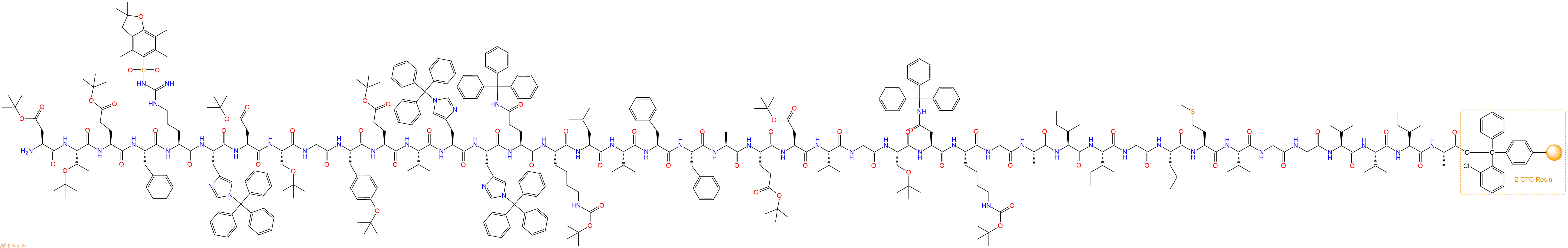 H2N-Arg(Pbf)-His(Trt)-Asp(OtBu)-Ser(tBu)-Gly-Tyr(tBu)-Glu(OtBu)-Val-His(Trt)-His(Trt)-Gln(Trt)-Lys(Boc)-Leu-Val-Phe-Phe-Ala-Glu(OtBu)-Asp(OtBu)-Val-Gly-Ser(tBu)-Asn(Trt)-Lys(Boc)-Gly-Ala-Ile-Ile-Gly-Leu-Met-Val-Gly-Gly-Val-Val-Ile-Ala-CTC Resin