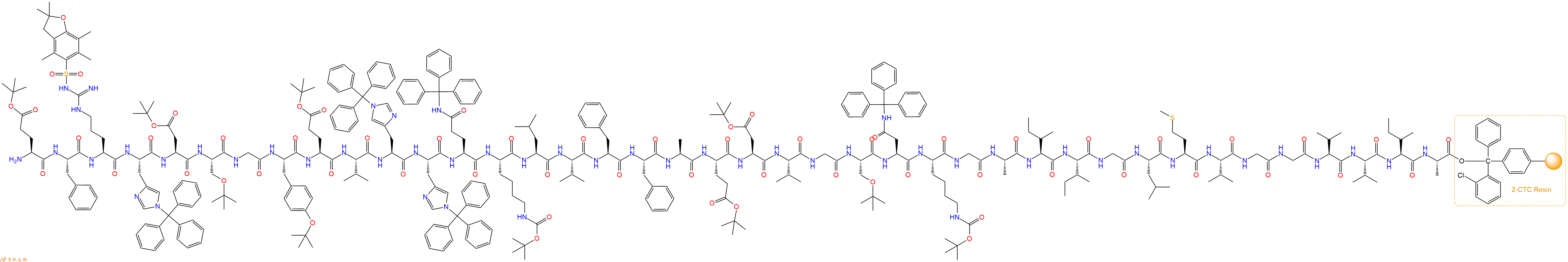 H2N-Arg(Pbf)-His(Trt)-Asp(OtBu)-Ser(tBu)-Gly-Tyr(tBu)-Glu(OtBu)-Val-His(Trt)-His(Trt)-Gln(Trt)-Lys(Boc)-Leu-Val-Phe-Phe-Ala-Glu(OtBu)-Asp(OtBu)-Val-Gly-Ser(tBu)-Asn(Trt)-Lys(Boc)-Gly-Ala-Ile-Ile-Gly-Leu-Met-Val-Gly-Gly-Val-Val-Ile-Ala-CTC Resin