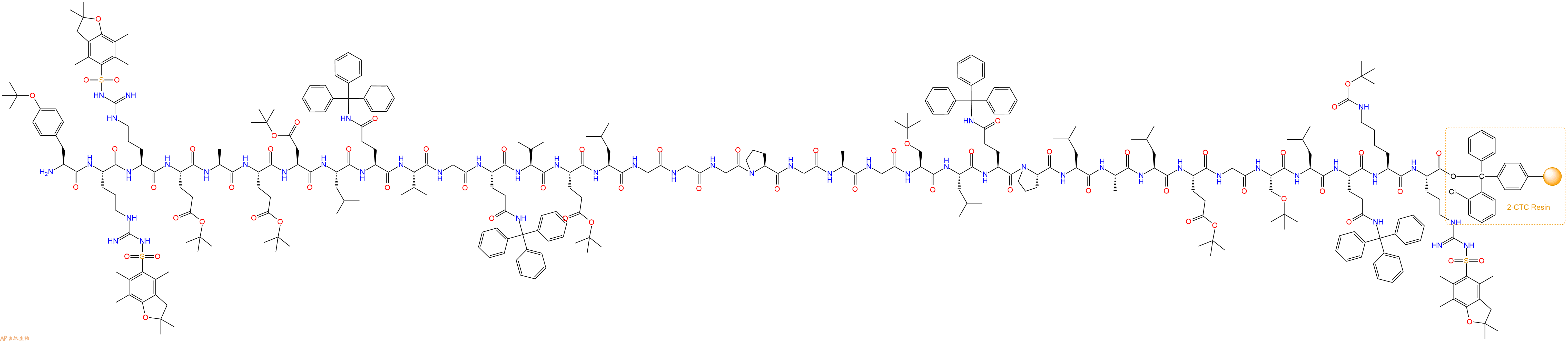 H2N-Arg(Pbf)-Arg(Pbf)-Glu(OtBu)-Ala-Glu(OtBu)-Asp(OtBu)-Leu-Gln(Trt)-Val-Gly-Gln(Trt)-Val-Glu(OtBu)-Leu-Gly-Gly-Gly-Pro-Gly-Ala-Gly-Ser(tBu)-Leu-Gln(Trt)-Pro-Leu-Ala-Leu-Glu(OtBu)-Gly-Ser(tBu)-Leu-Gln(Trt)-Lys(Boc)-Arg(Pbf)-CTC Resin