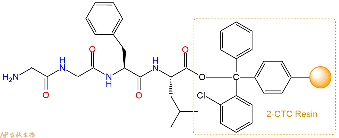 最后再经过步骤二得到 H2N-Gly-Gly-Phe-Leu-CTC Resin,结构如下: