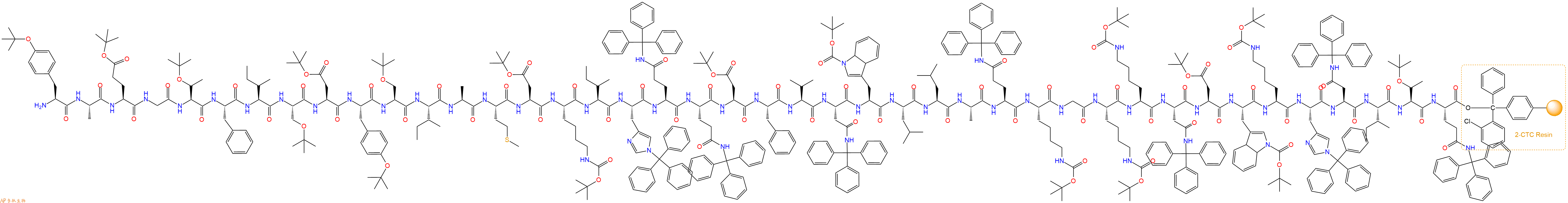 H2N-Ala-Met-Asp(OtBu)-Lys(Boc)-Ile-His(Trt)-Gln(Trt)-Gln(Trt)-Asp(OtBu)-Phe-Val-Asn(Trt)-Trp(Boc)-Leu-Leu-Ala-Gln(Trt)-Lys(Boc)-Gly-Lys(Boc)-Lys(Boc)-Asn(Trt)-Asp(OtBu)-Trp(Boc)-Lys(Boc)-His(Trt)-Asn(Trt)-Ile-Thr(tBu)-Gln(Trt)-CTC Resin