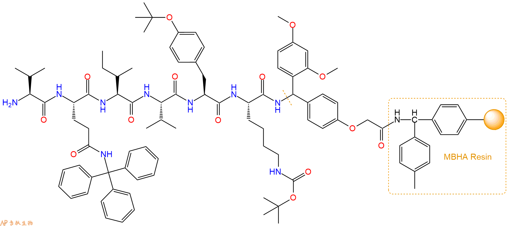 Fmoc-Val-Gln(Trt)-Ile-Val-Tyr(tBu)-Lys(Boc)-Linker-MBHA Resin