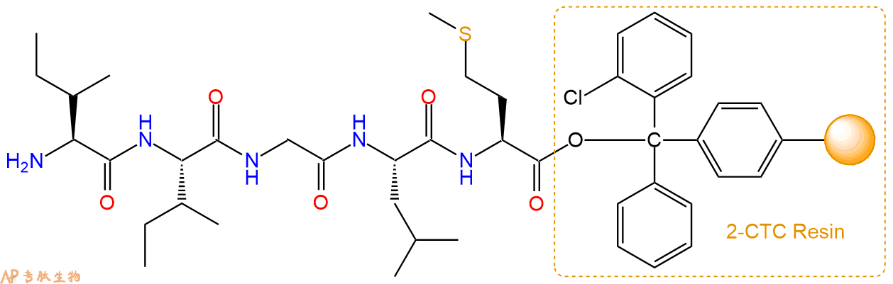 最后再经过步骤二得到 H2N-Ile-Ile-Gly-Leu-Met-CTC Resin,结构如下: