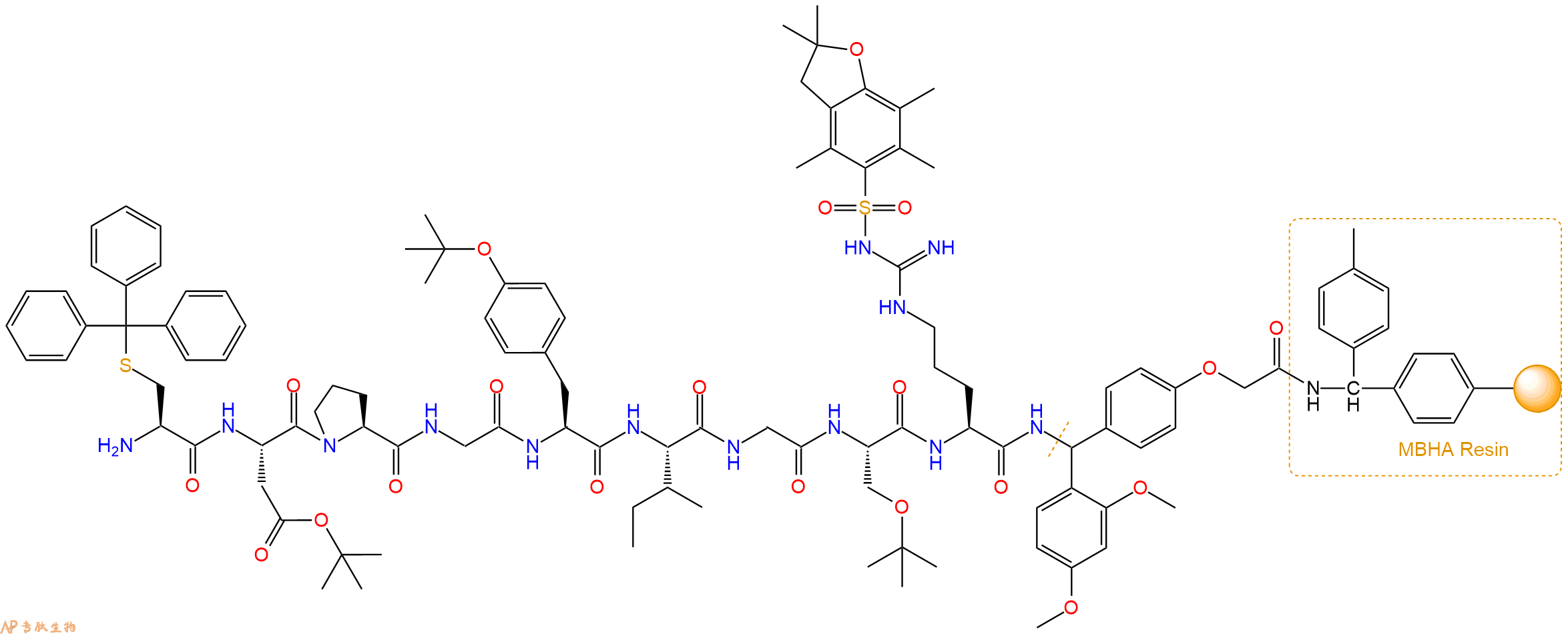 H2N-Ile-Gly-Ser(tBu)-Arg(Pbf)-Linker-MBHA Resin