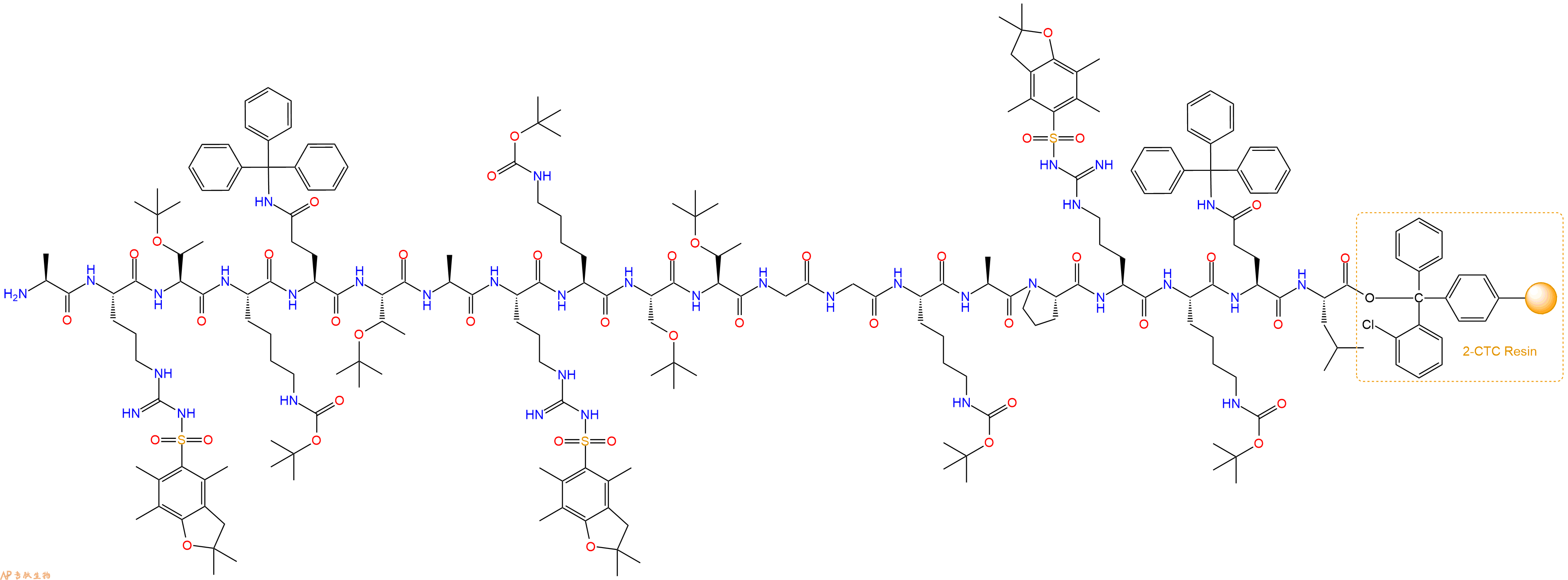 H2N-Arg(Pbf)-Thr(tBu)-Lys(Boc)-Gln(Trt)-Thr(tBu)-Ala-Arg(Pbf)-Lys(Boc)-Ser(tBu)-Thr(tBu)-Gly-Gly-Lys(Boc)-Ala-Pro-Arg(Pbf)-Lys(Boc)-Gln(Trt)-Leu-CTC Resin