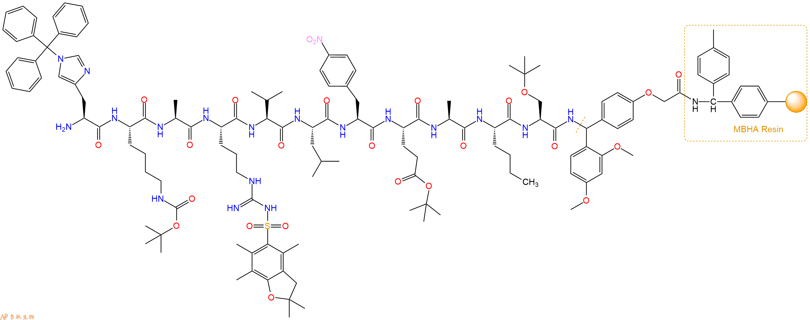 Fmoc-His(Trt)-Lys(Boc)-Ala-Arg(Pbf)-Val-Leu-Phe(4NO2)-Glu(OtBu)-Ala-Nle-Ser(tBu)-Linker-MBHA Resin