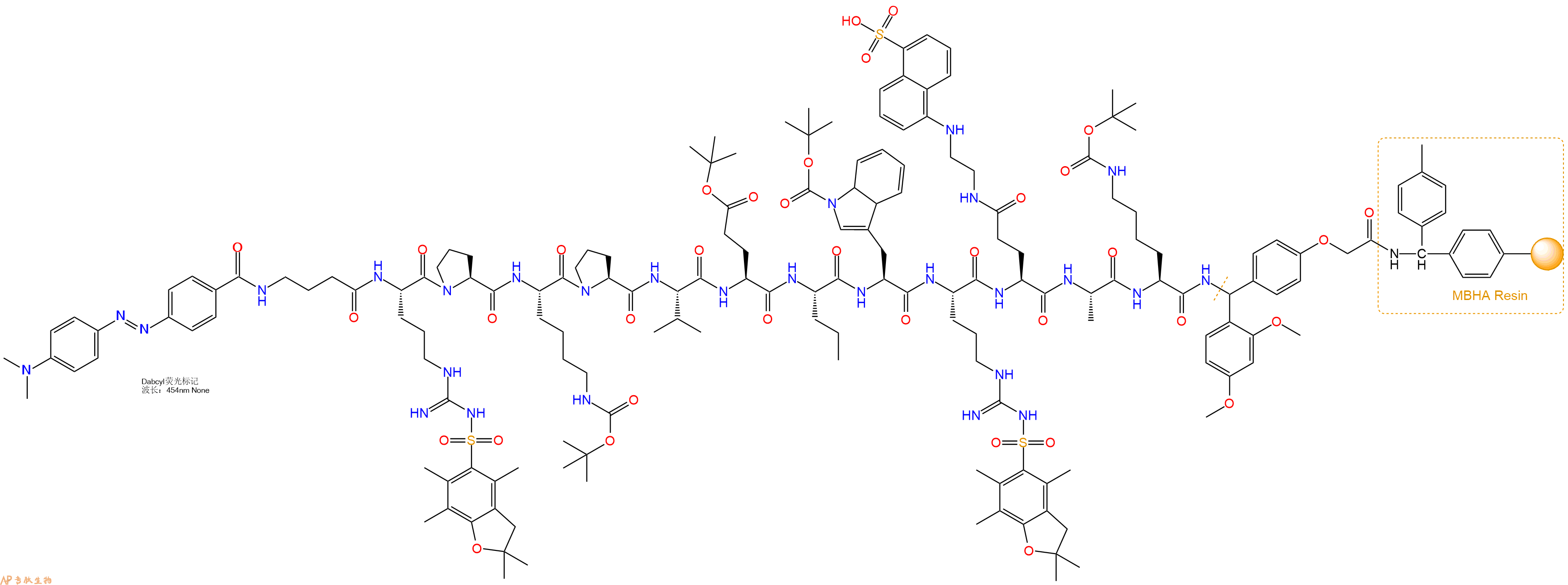 H2N-Arg(Pbf)-Glu(Edans)-Ala-Lys(Boc)-Linker-MBHA Resin