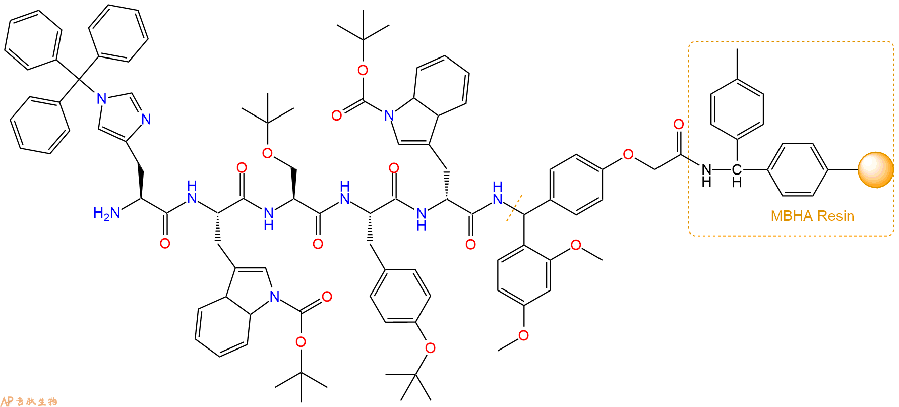 Fmoc-His(Trt)-Trp(Boc)-Ser(tBu)-Tyr(tBu)-DTrp(Boc)-Linker-MBHA Resin