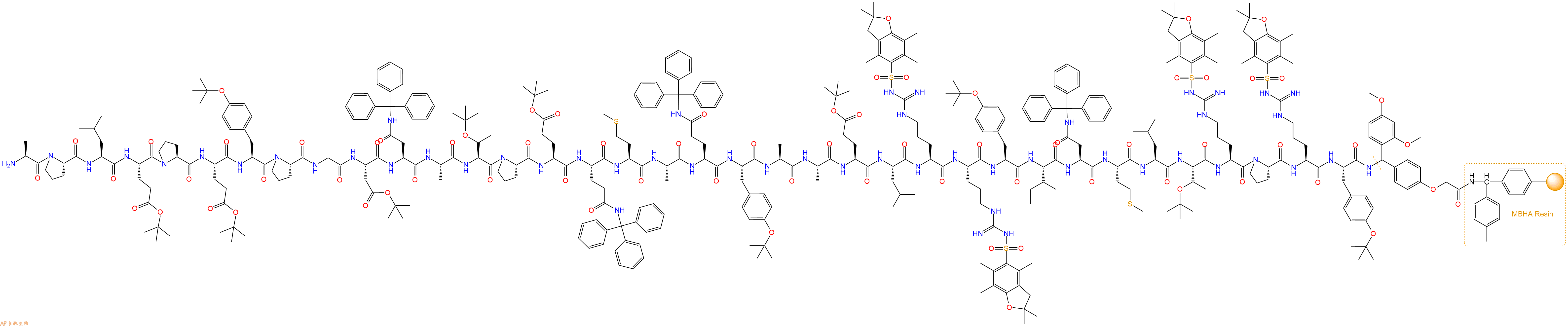 H2N-Ala-Glu(OtBu)-Leu-Arg(Pbf)-Arg(Pbf)-Tyr(tBu)-Ile-Asn(Trt)-Met-Leu-Thr(tBu)-Arg(Pbf)-Pro-Arg(Pbf)-Tyr(tBu)-Linker-MBHA Resin