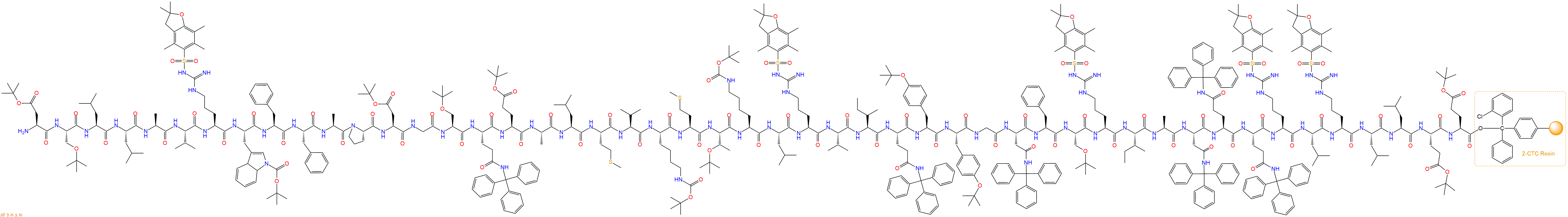 H2N-Arg(Pbf)-Trp(Boc)-Phe-Phe-Ala-Pro-Asp(OtBu)-Gly-Ser(tBu)-Gln(Trt)-Glu(OtBu)-Ala-Leu-Met-Val-Lys(Boc)-Met-Thr(tBu)-Lys(Boc)-Leu-Arg(Pbf)-Val-Ile-Gln(Trt)-Tyr(tBu)-Tyr(tBu)-Gly-Asn(Trt)-Phe-Ser(tBu)-Arg(Pbf)-Ile-Ala-Asn(Trt)-Gln(Trt)-Gln(Trt)-Arg(Pbf)-Leu-Arg(Pbf)-Leu-Leu-Glu(OtBu)-Glu(OtBu)-CTC Resin