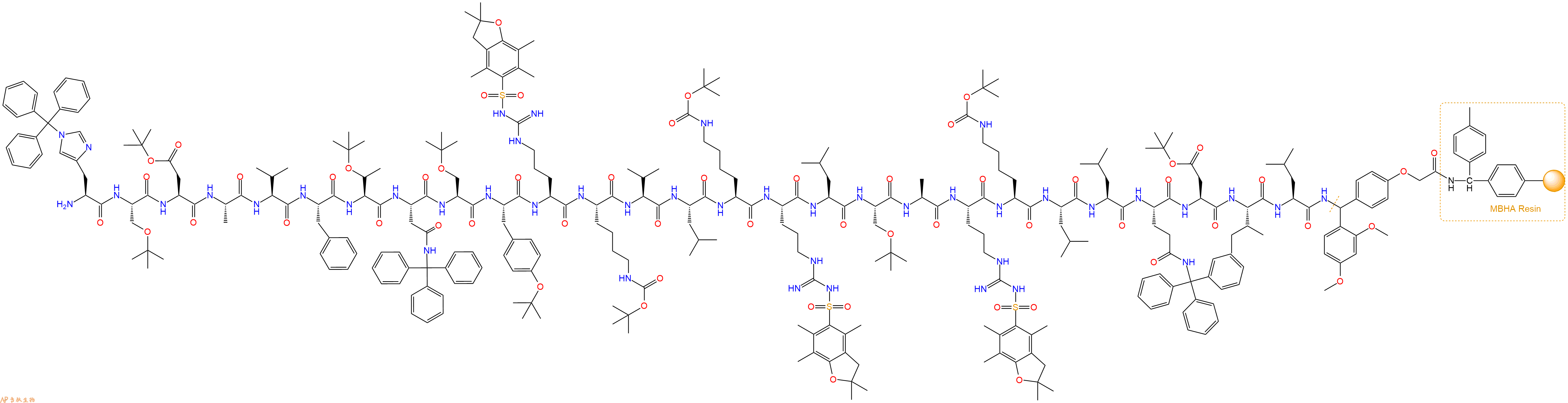 Fmoc-Ala-Val-Phe-Thr(tBu)-Asn(Trt)-Ser(tBu)-Tyr(tBu)-Arg(Pbf)-Lys(Boc)-Val-Leu-Lys(Boc)-Arg(Pbf)-Leu-Ser(tBu)-Ala-Arg(Pbf)-Lys(Boc)-Leu-Leu-Gln(Trt)-Asp(OtBu)-Ile-Leu-Linker-MBHA Resin