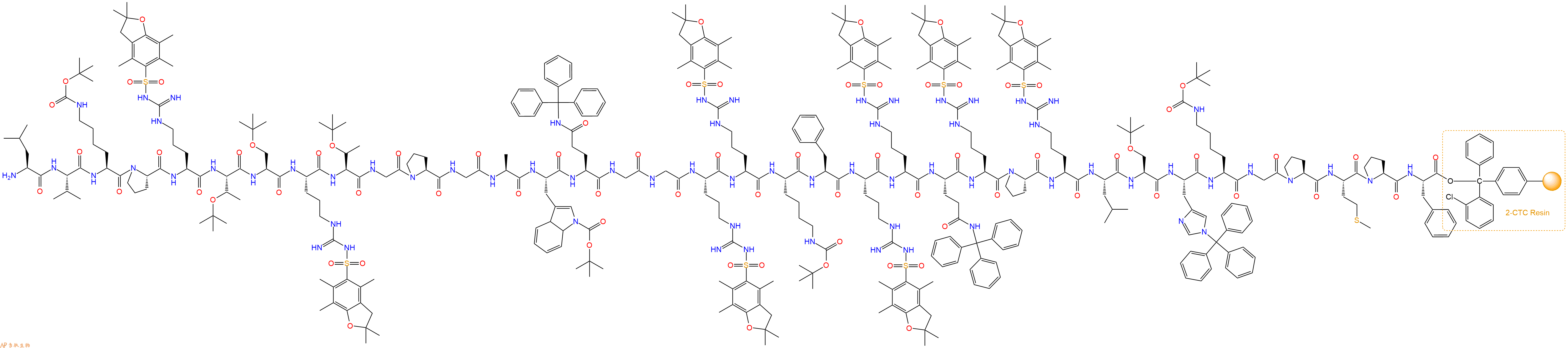 H2N-Gly-Arg(Pbf)-Arg(Pbf)-Lys(Boc)-Phe-Arg(Pbf)-Arg(Pbf)-Gln(Trt)-Arg(Pbf)-Pro-Arg(Pbf)-Leu-Ser(tBu)-His(Trt)-Lys(Boc)-Gly-Pro-Met-Pro-Phe-CTC Resin