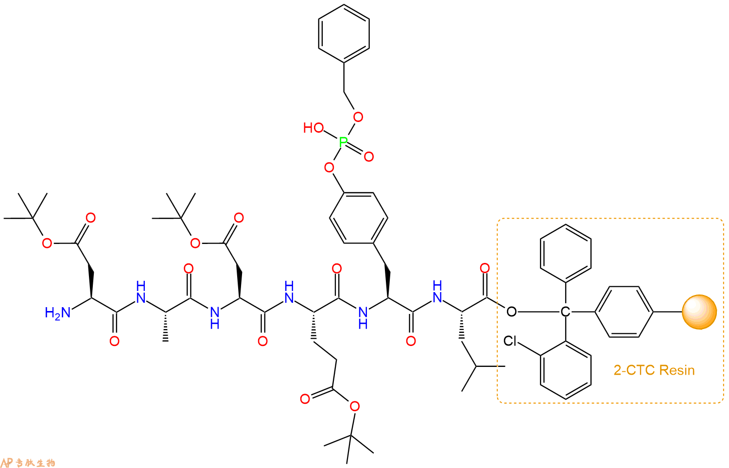 H2N-Ala-Asp(OtBu)-Glu(OtBu)-Tyr(HPO3Bzl)-Leu-CTC Resin