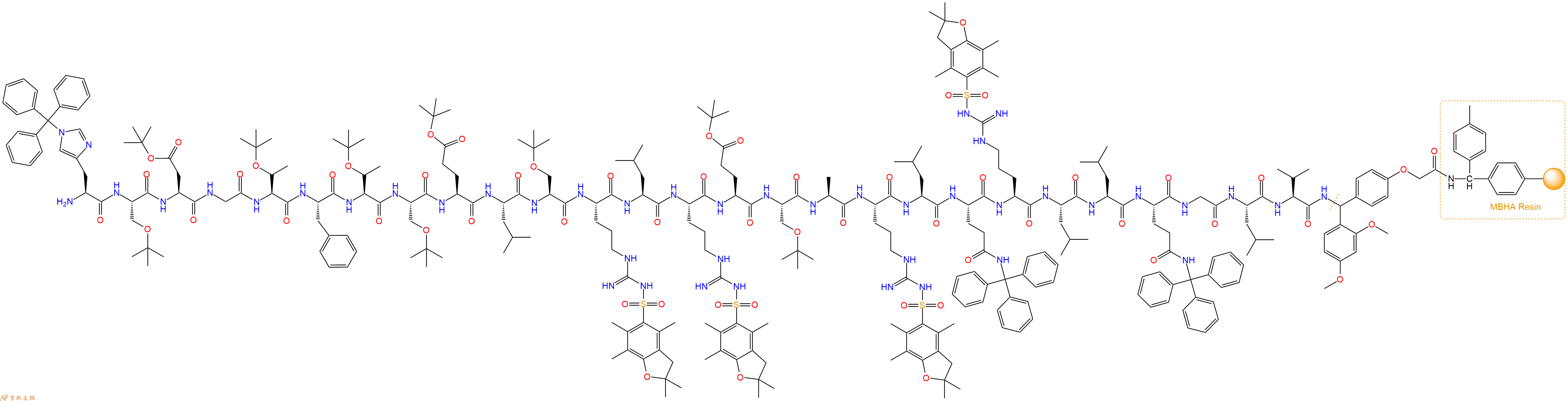 H2N-Arg(Pbf)-Leu-Arg(Pbf)-Glu(OtBu)-Ser(tBu)-Ala-Arg(Pbf)-Leu-Gln(Trt)-Arg(Pbf)-Leu-Leu-Gln(Trt)-Gly-Leu-Val-Linker-MBHA Resin