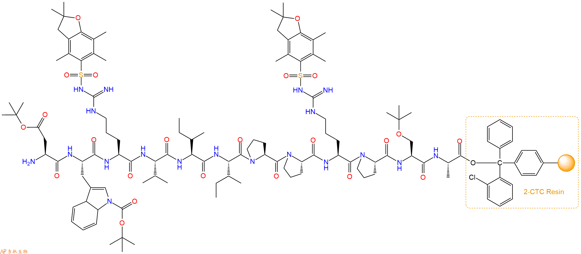 Fmoc-Trp(Boc)-Arg(Pbf)-Val-Ile-Ile-Pro-Pro-Arg(Pbf)-Pro-Ser(tBu)-Ala-CTC Resin