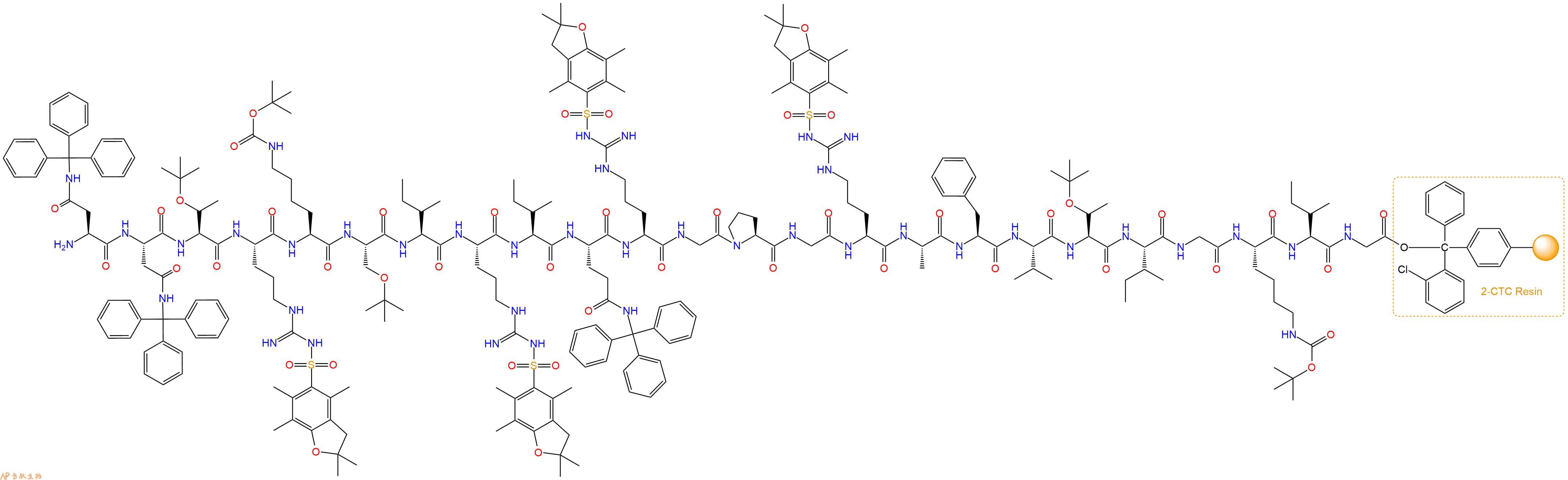 H2N-Asn(Trt)-Thr(tBu)-Arg(Pbf)-Lys(Boc)-Ser(tBu)-Ile-Arg(Pbf)-Ile-Gln(Trt)-Arg(Pbf)-Gly-Pro-Gly-Arg(Pbf)-Ala-Phe-Val-Thr(tBu)-Ile-Gly-Lys(Boc)-Ile-Gly-CTC Resin