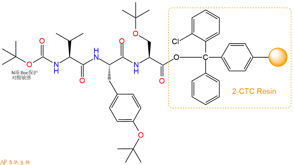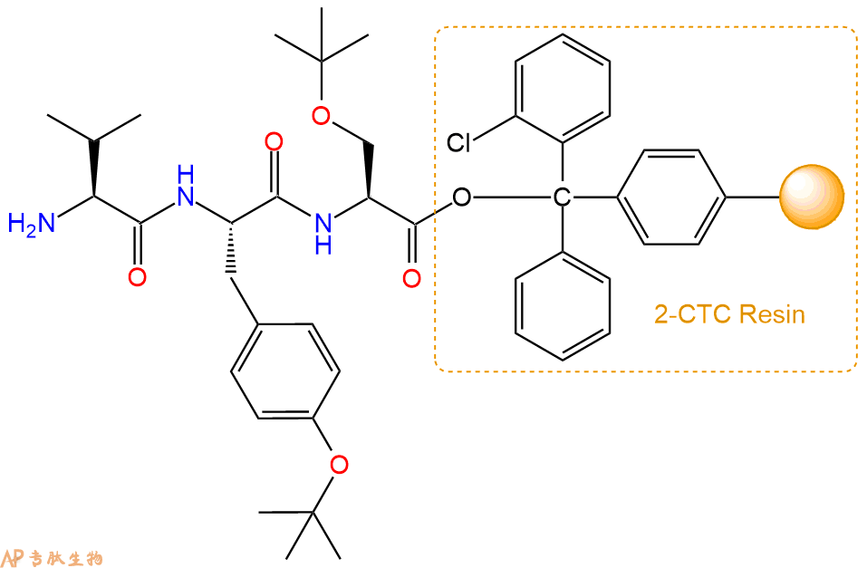 最后再经过步骤二得到 H2N-Val-Tyr(tBu)-Ser(tBu)-CTC Resin,结构如下: