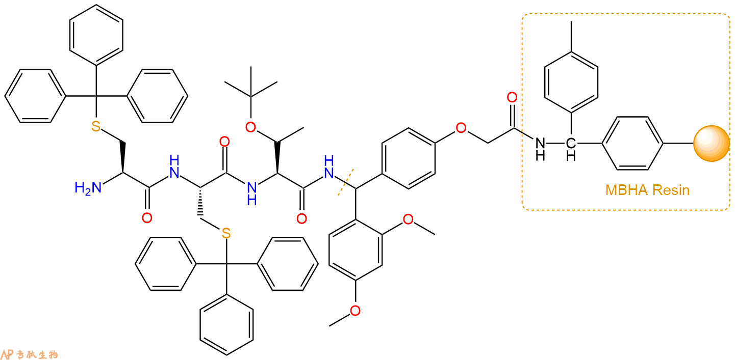 Fmoc-Cys(Trt)-Cys(Trt)-Thr(tBu)-Linker-MBHA Resin