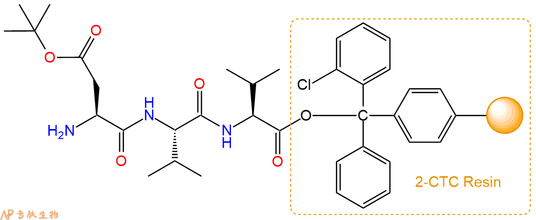 最后再经过步骤二得到 H2N-Asp(OtBu)-Val-Val-CTC Resin,结构如下: