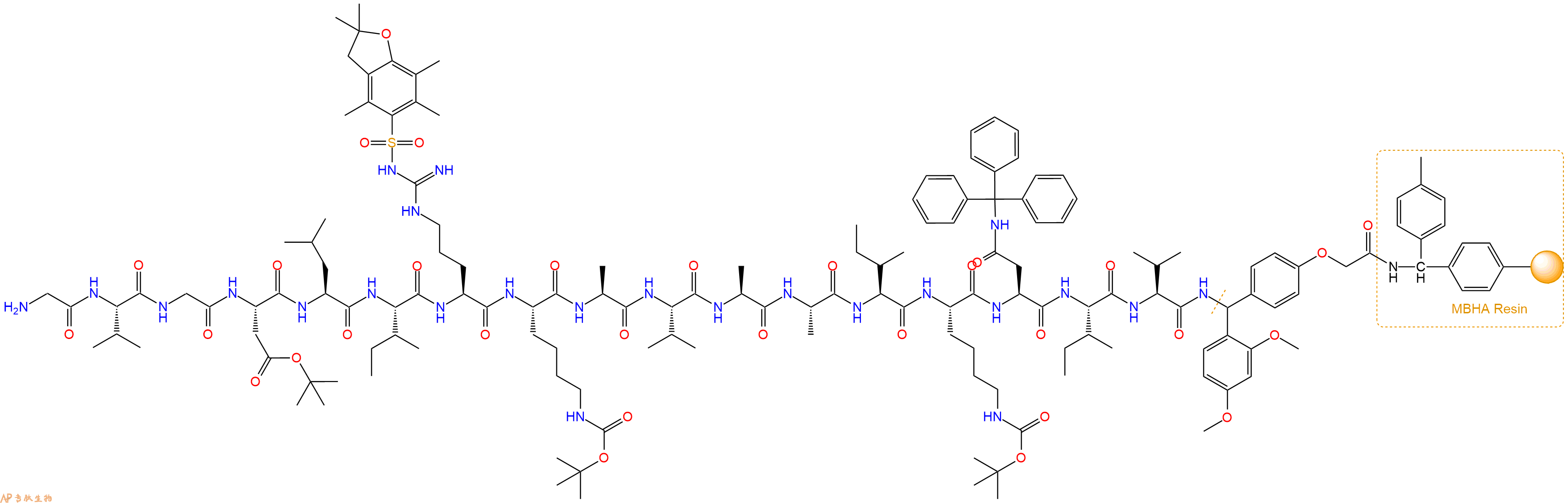 H2N-Val-Gly-Asp(OtBu)-Leu-Ile-Arg(Pbf)-Lys(Boc)-Ala-Val-Ala-Ala-Ile-Lys(Boc)-Asn(Trt)-Ile-Val-Linker-MBHA Resin