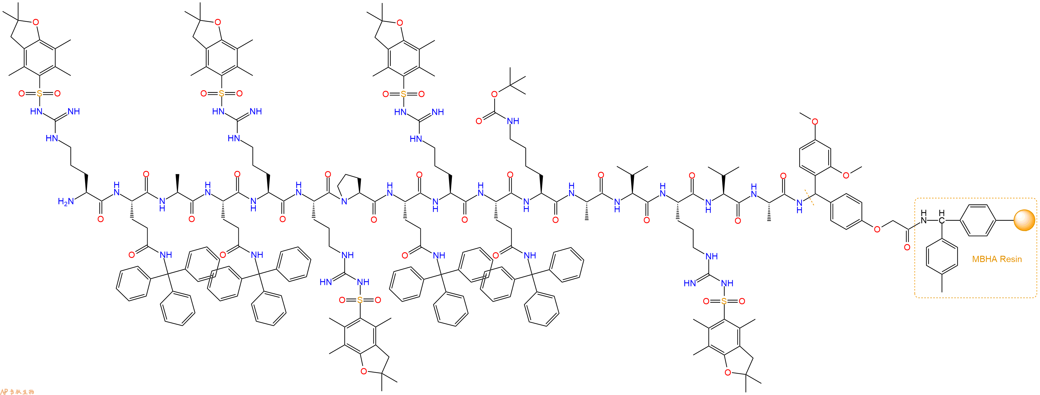 Fmoc-Gln(Trt)-Arg(Pbf)-Arg(Pbf)-Pro-Gln(Trt)-Arg(Pbf)-Gln(Trt)-Lys(Boc)-Ala-Val-Arg(Pbf)-Val-Ala-Linker-MBHA Resin