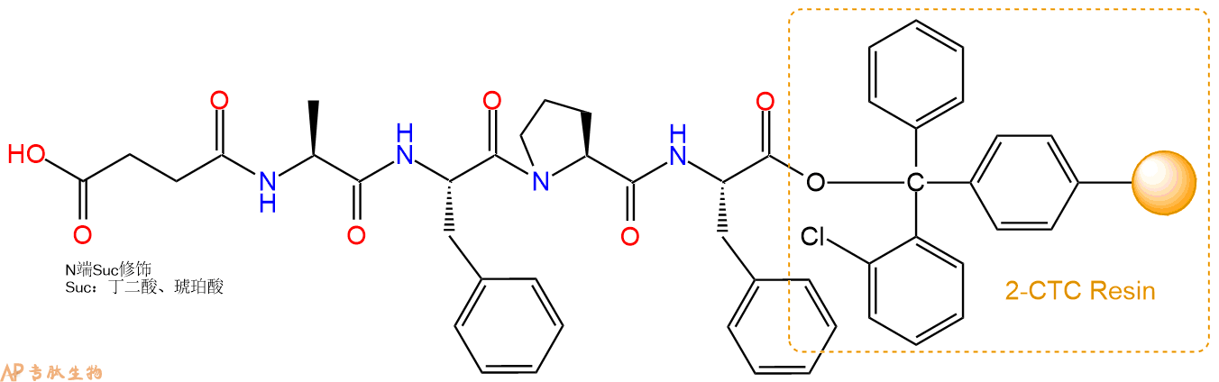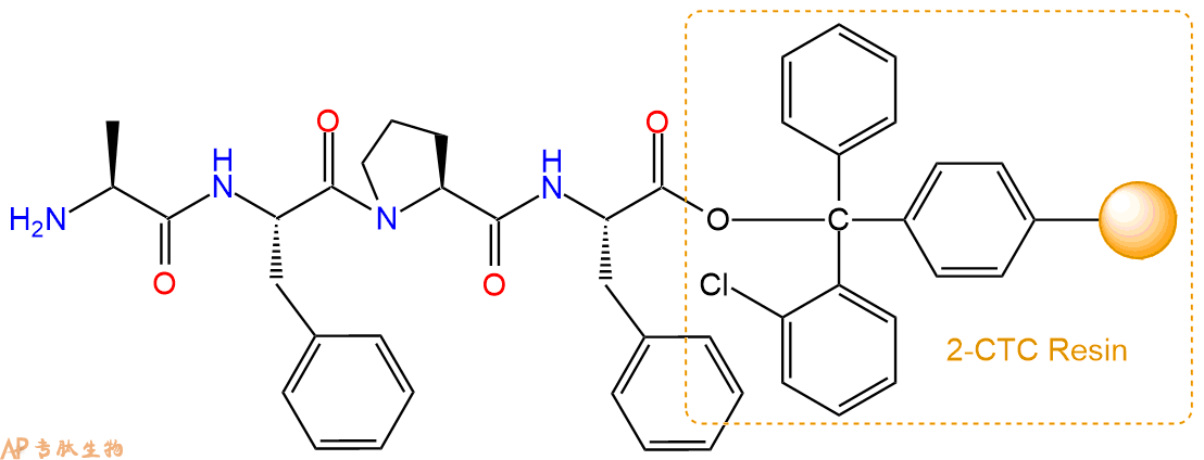 最后再经过步骤二得到 H2N-Ala-Phe-Pro-Phe-CTC Resin,结构如下: