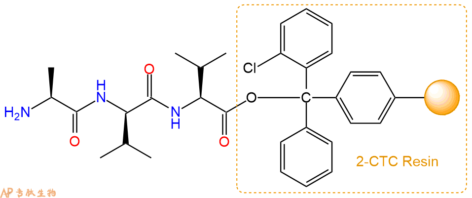 最后再经过步骤二得到 H2N-Ala-DVal-Val-CTC Resin,结构如下: