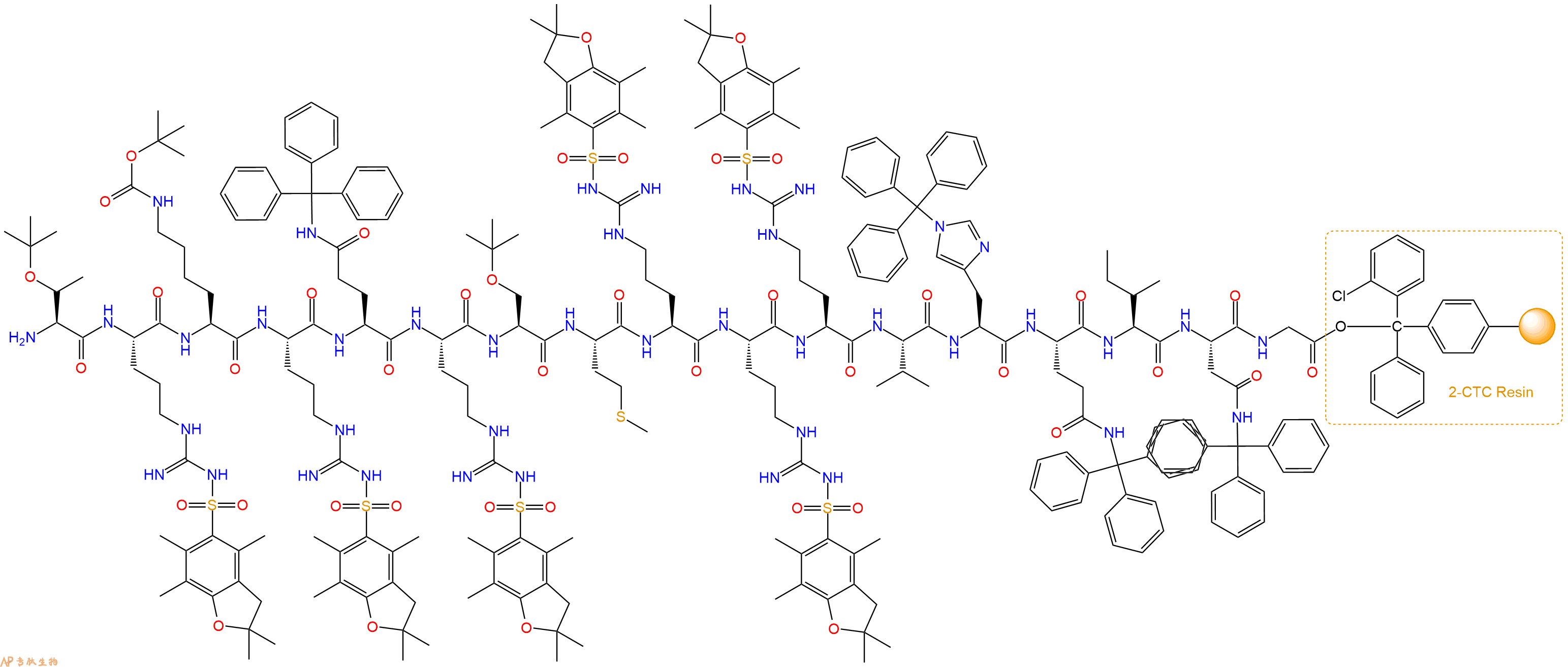 H2N-Arg(Pbf)-Lys(Boc)-Arg(Pbf)-Gln(Trt)-Arg(Pbf)-Ser(tBu)-Met-Arg(Pbf)-Arg(Pbf)-Arg(Pbf)-Val-His(Trt)-Gln(Trt)-Ile-Asn(Trt)-Gly-CTC Resin