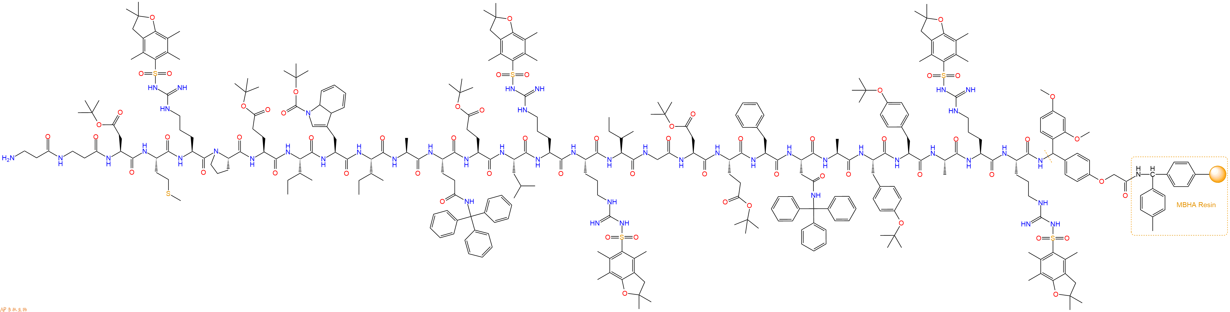 H2N-Ile-Trp(Boc)-Ile-Ala-Gln(Trt)-Glu(OtBu)-Leu-Arg(Pbf)-Arg(Pbf)-Ile-Gly-Asp(OtBu)-Glu(OtBu)-Phe-Asn(Trt)-Ala-Tyr(tBu)-Tyr(tBu)-Ala-Arg(Pbf)-Arg(Pbf)-Linker-MBHA Resin