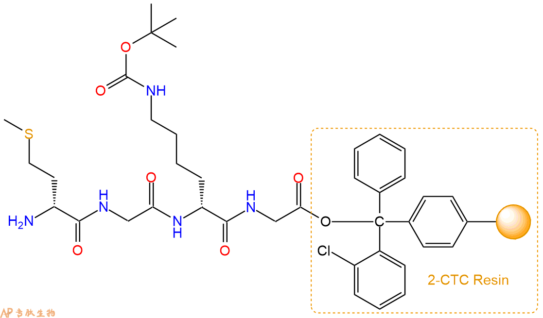 最后再经过步骤二得到 H2N-DMet-Gly-DLys(Boc)-Gly-CTC Resin,结构如下: