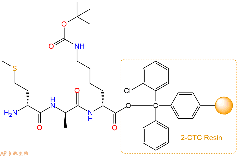 最后再经过步骤二得到 H2N-DMet-DAla-DLys(Boc)-CTC Resin,结构如下: