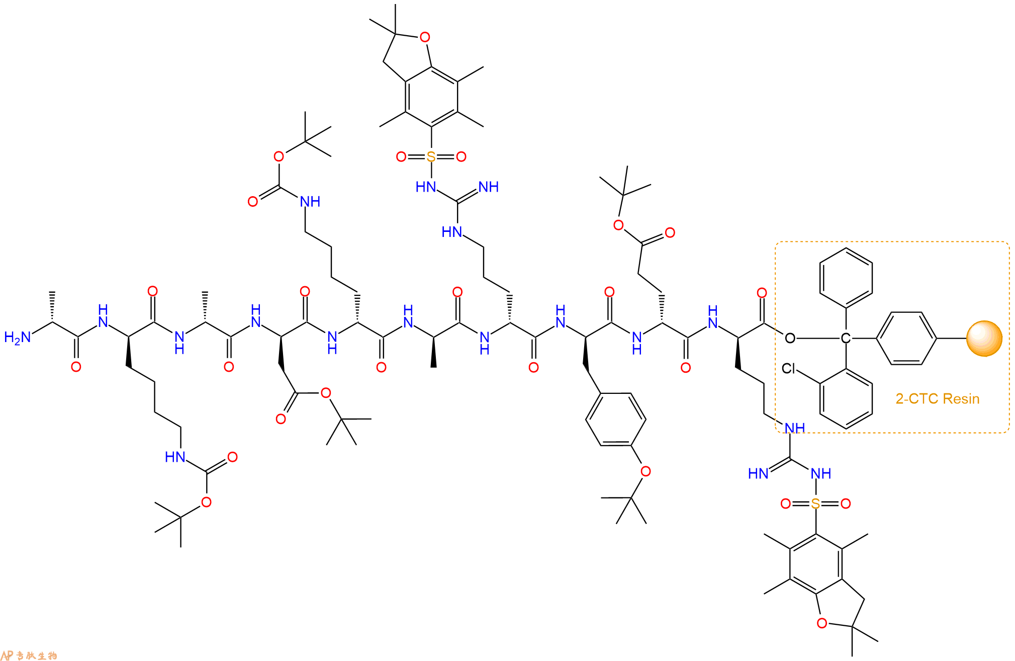 H2N-DAla-DAsp(OtBu)-DLys(Boc)-DAla-DArg(Pbf)-DTyr(tBu)-DGlu(OtBu)-DArg(Pbf)-CTC Resin