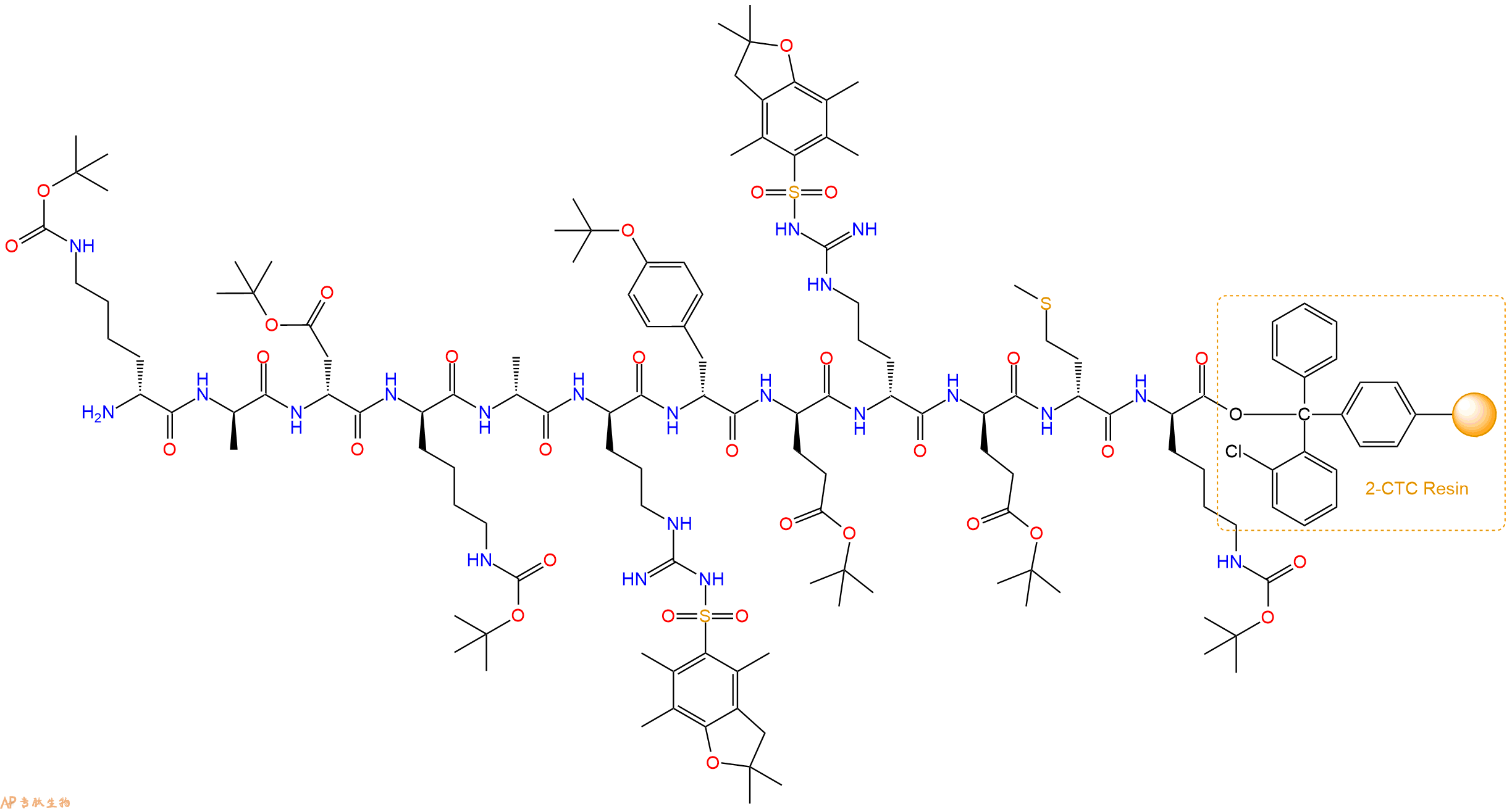 H2N-DAsp(OtBu)-DLys(Boc)-DAla-DArg(Pbf)-DTyr(tBu)-DGlu(OtBu)-DArg(Pbf)-DGlu(OtBu)-DMet-DLys(Boc)-CTC Resin