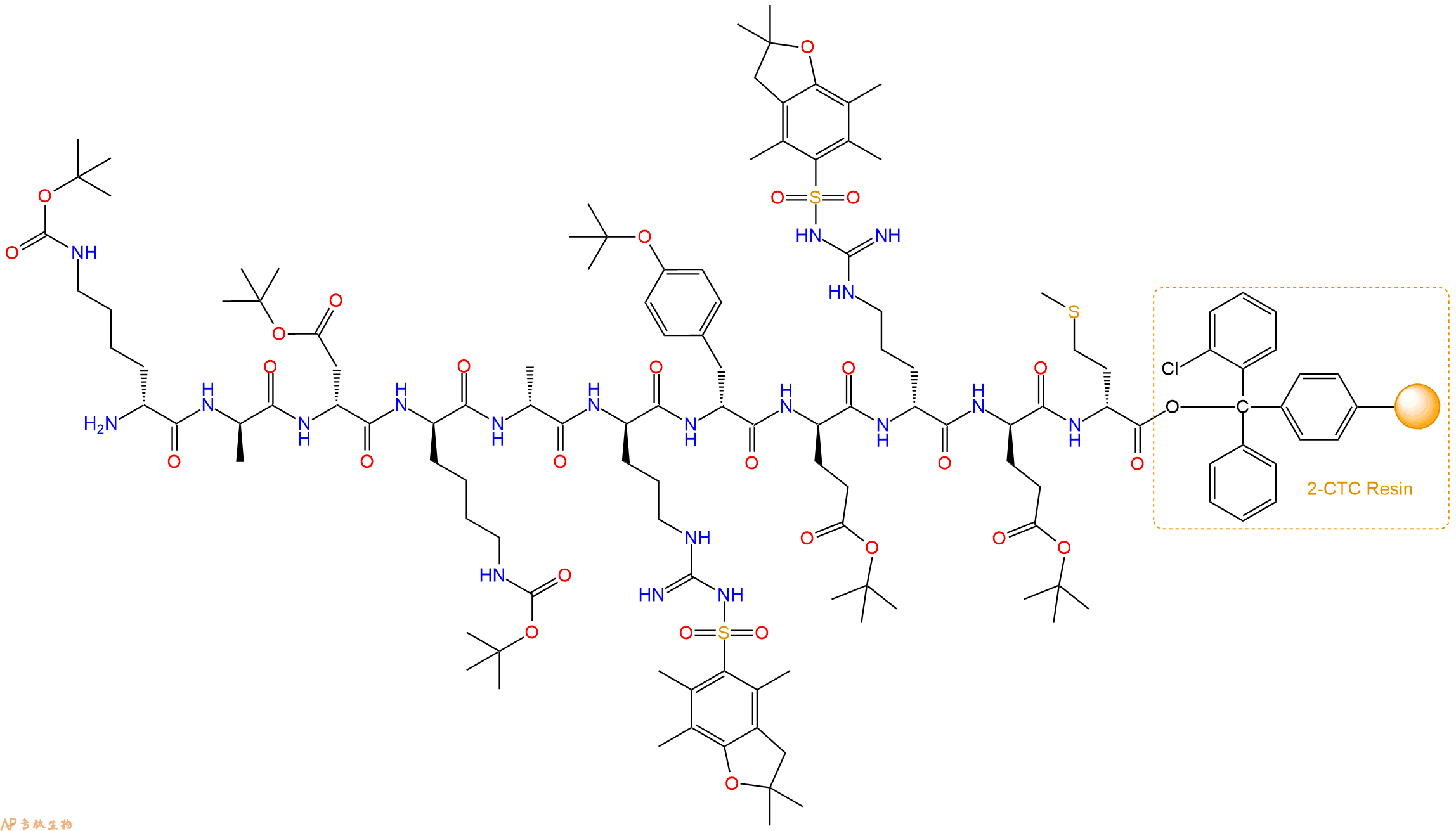 H2N-DAsp(OtBu)-DLys(Boc)-DAla-DArg(Pbf)-DTyr(tBu)-DGlu(OtBu)-DArg(Pbf)-DGlu(OtBu)-DMet-CTC Resin