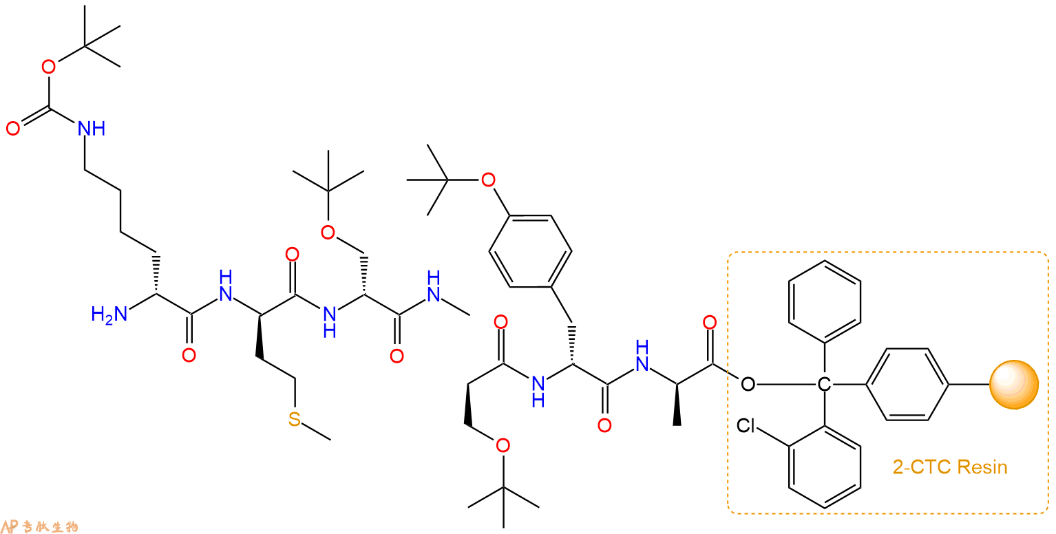 最后再经过步骤二得到 H2N-DLys(Boc)-DMet-DSer(tBu)-DSer(tBu)-DTyr(tBu)-DAla-CTC Resin,结构如下: