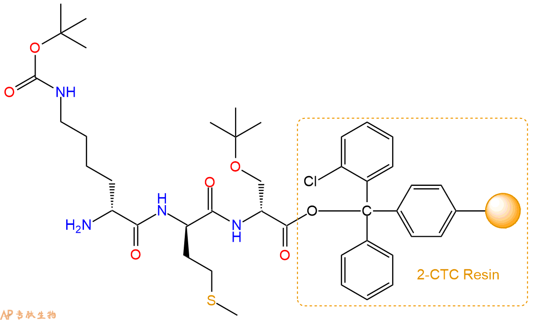 最后再经过步骤二得到 H2N-DLys(Boc)-DMet-DSer(tBu)-CTC Resin,结构如下: