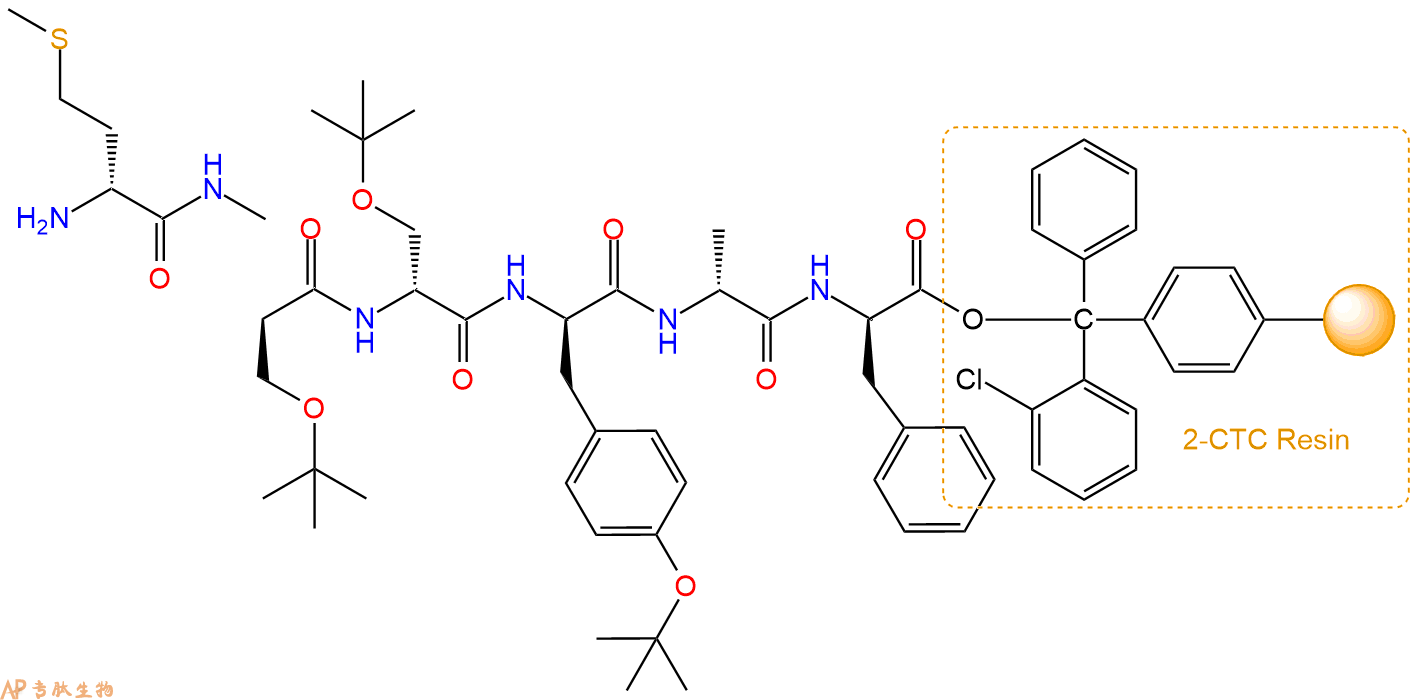 最后再经过步骤二得到 H2N-DMet-DSer(tBu)-DSer(tBu)-DTyr(tBu)-DAla-DPhe-CTC Resin,结构如下: