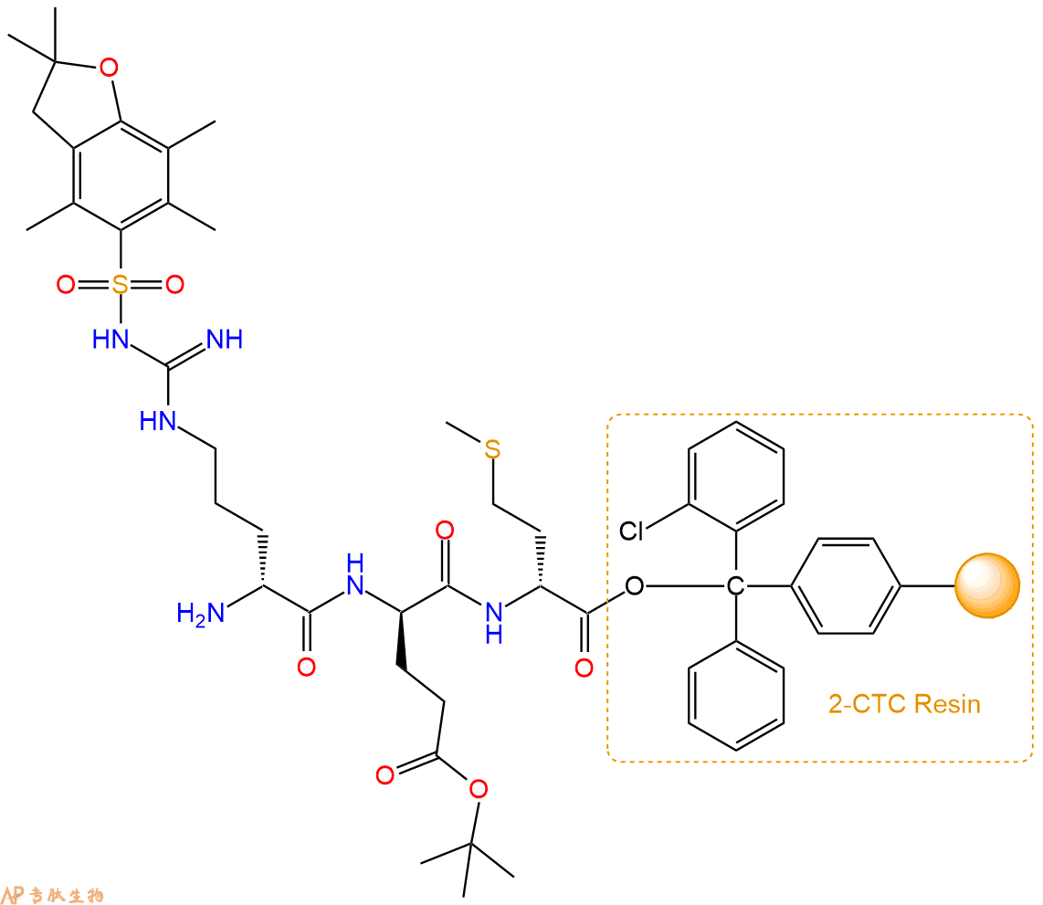 最后再经过步骤二得到 H2N-DArg(Pbf)-DGlu(OtBu)-DMet-CTC Resin,结构如下:
