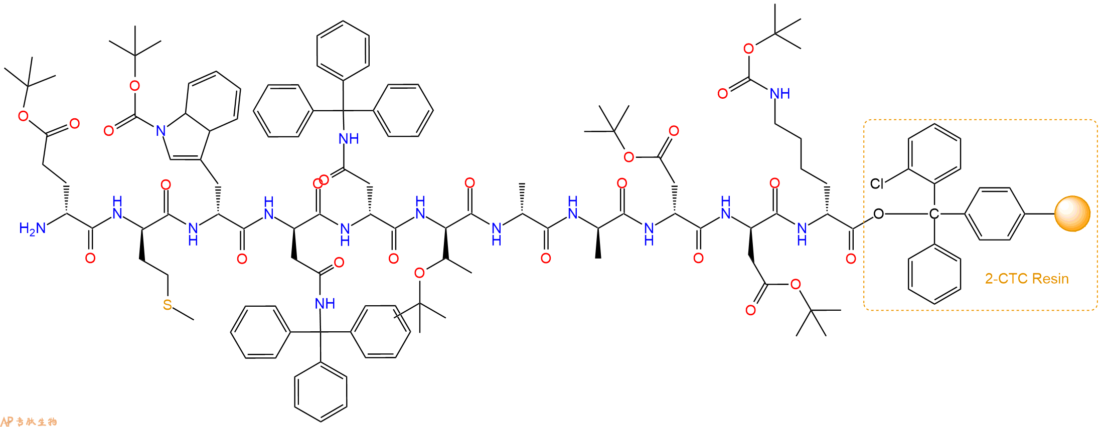 H2N-DMet-DTrp(Boc)-DAsn(Trt)-DAsn(Trt)-DThr(tBu)-DAla-DAla-DAsp(OtBu)-DAsp(OtBu)-DLys(Boc)-CTC Resin