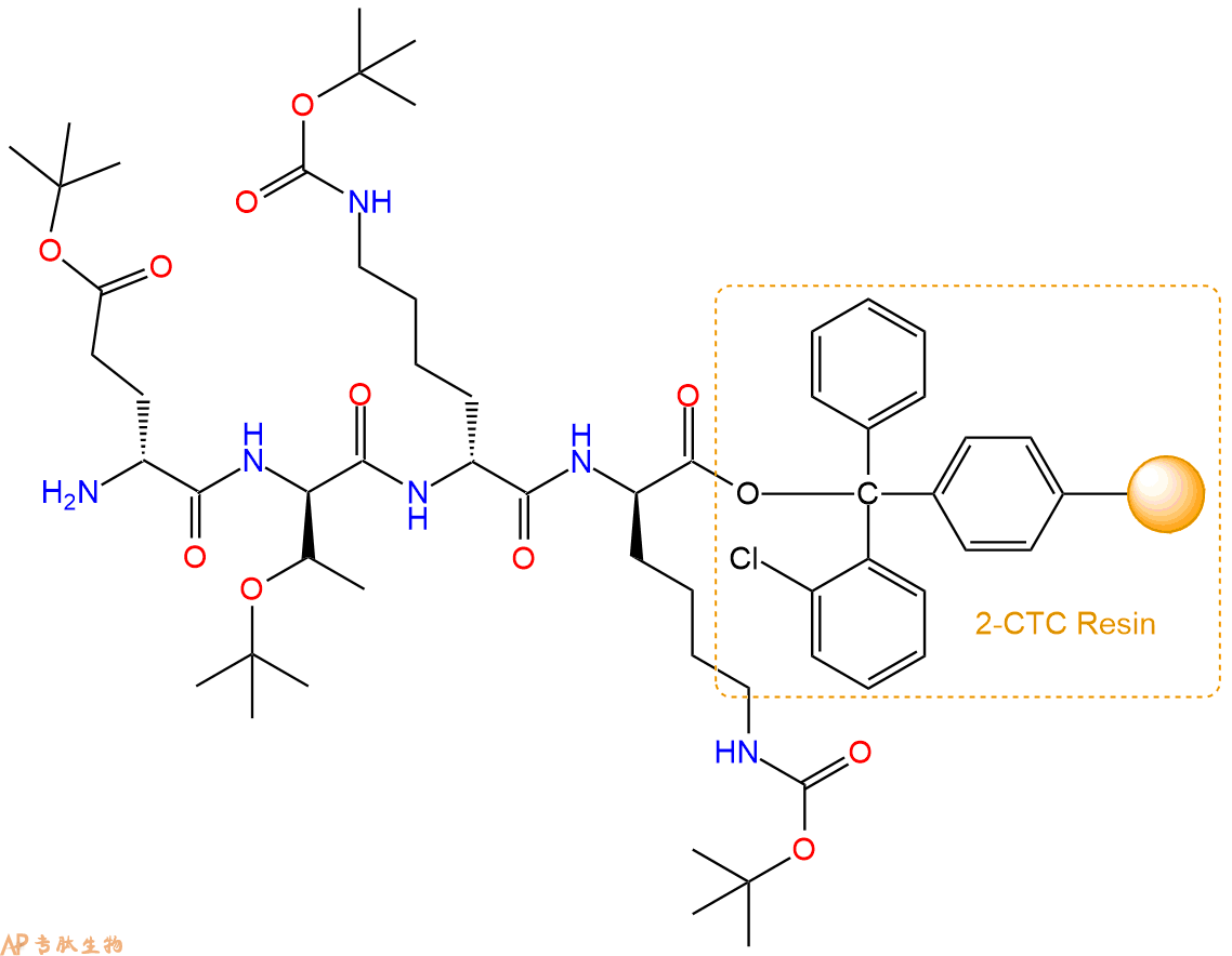 最后再经过步骤二得到 H2N-DGlu(OtBu)-DThr(tBu)-DLys(Boc)-DLys(Boc)-CTC Resin,结构如下: