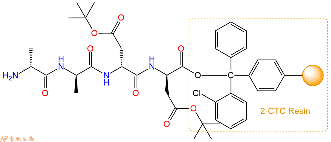 最后再经过步骤二得到 H2N-DAla-DAla-DAsp(OtBu)-DAsp(OtBu)-CTC Resin,结构如下: