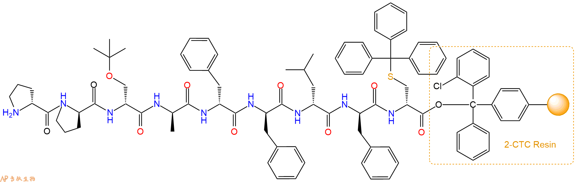 H2N-DPro-DSer(tBu)-DAla-DPhe-DPhe-DLeu-DPhe-DCys(Trt)-CTC Resin