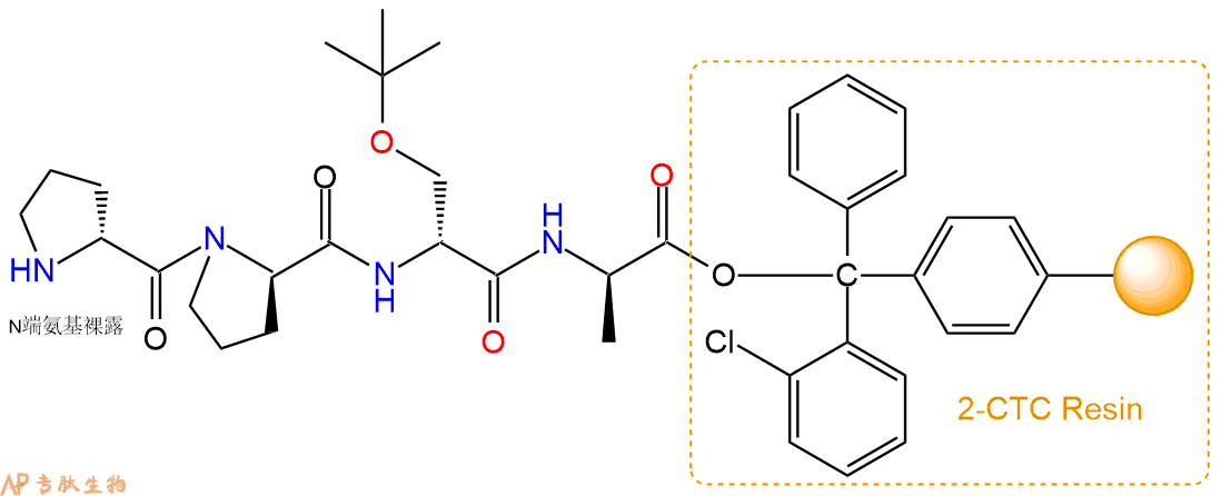 最后再经过步骤二得到 H2N-DPro-DPro-DSer(tBu)-DAla-CTC Resin,结构如下: