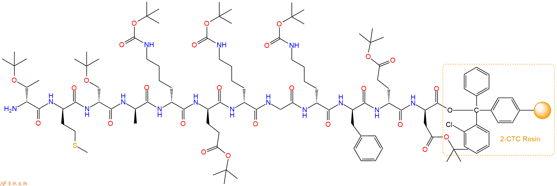 H2N-DMet-DSer(tBu)-DAla-DLys(Boc)-DGlu(OtBu)-DLys(Boc)-Gly-DLys(Boc)-DPhe-DGlu(OtBu)-DAsp(OtBu)-CTC Resin