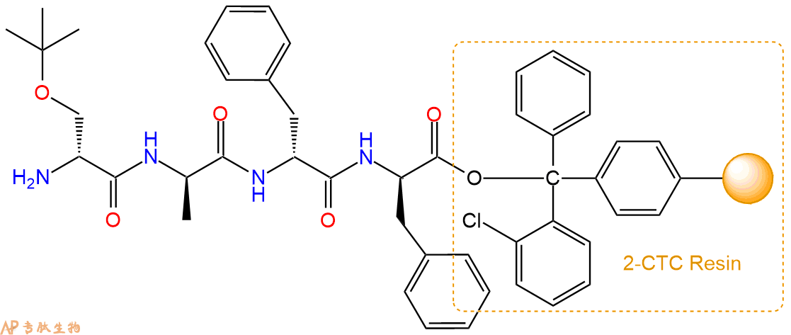 最后再经过步骤二得到 H2N-DSer(tBu)-DAla-DPhe-DPhe-CTC Resin,结构如下: