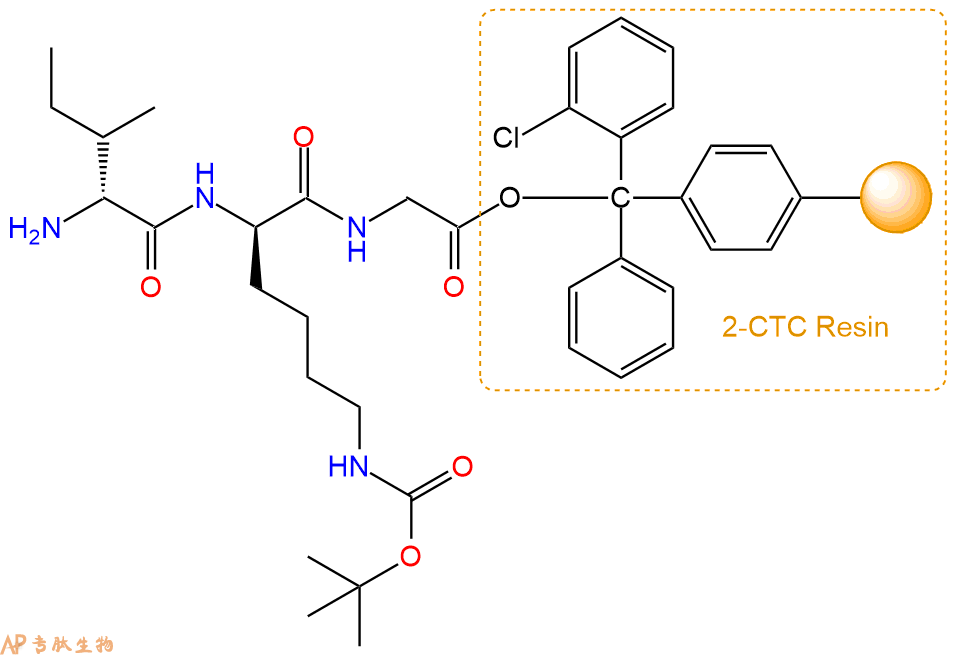 最后再经过步骤二得到 H2N-DIle-DLys(Boc)-Gly-CTC Resin,结构如下: