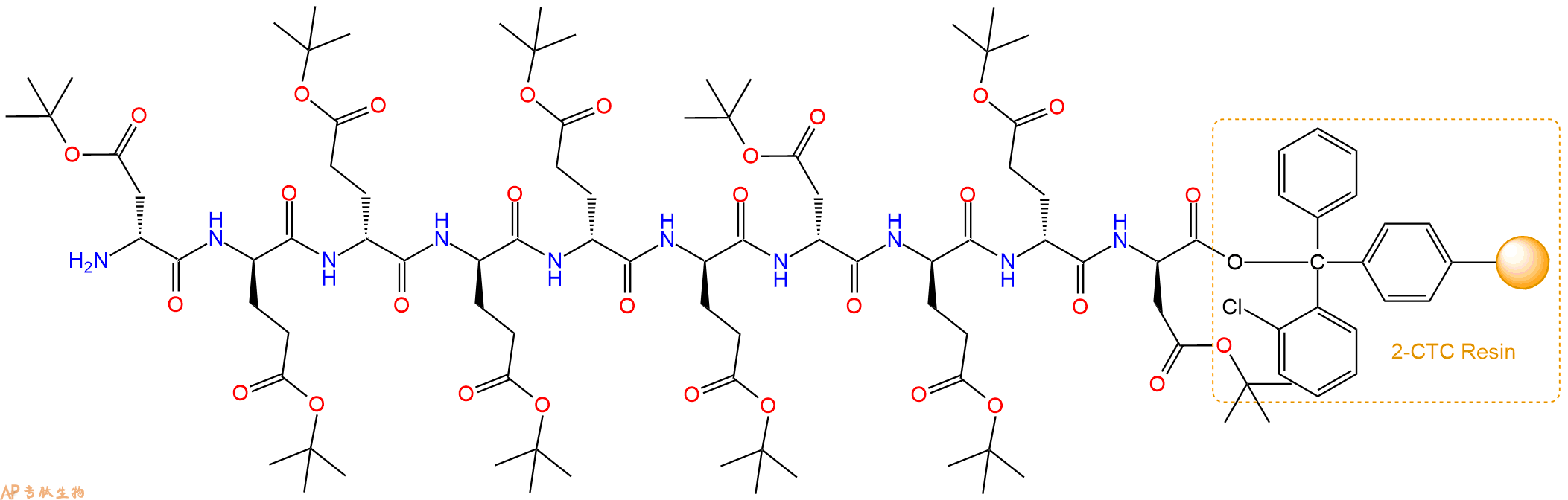 H2N-DGlu(OtBu)-DGlu(OtBu)-DGlu(OtBu)-DGlu(OtBu)-DGlu(OtBu)-DAsp(OtBu)-DGlu(OtBu)-DGlu(OtBu)-DAsp(OtBu)-CTC Resin