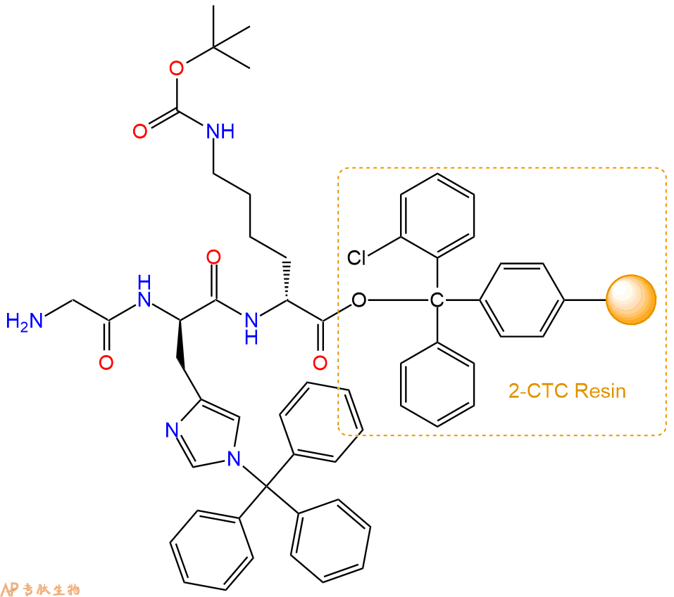最后再经过步骤二得到 H2N-Gly-DHis(Trt)-DLys(Boc)-CTC Resin,结构如下: