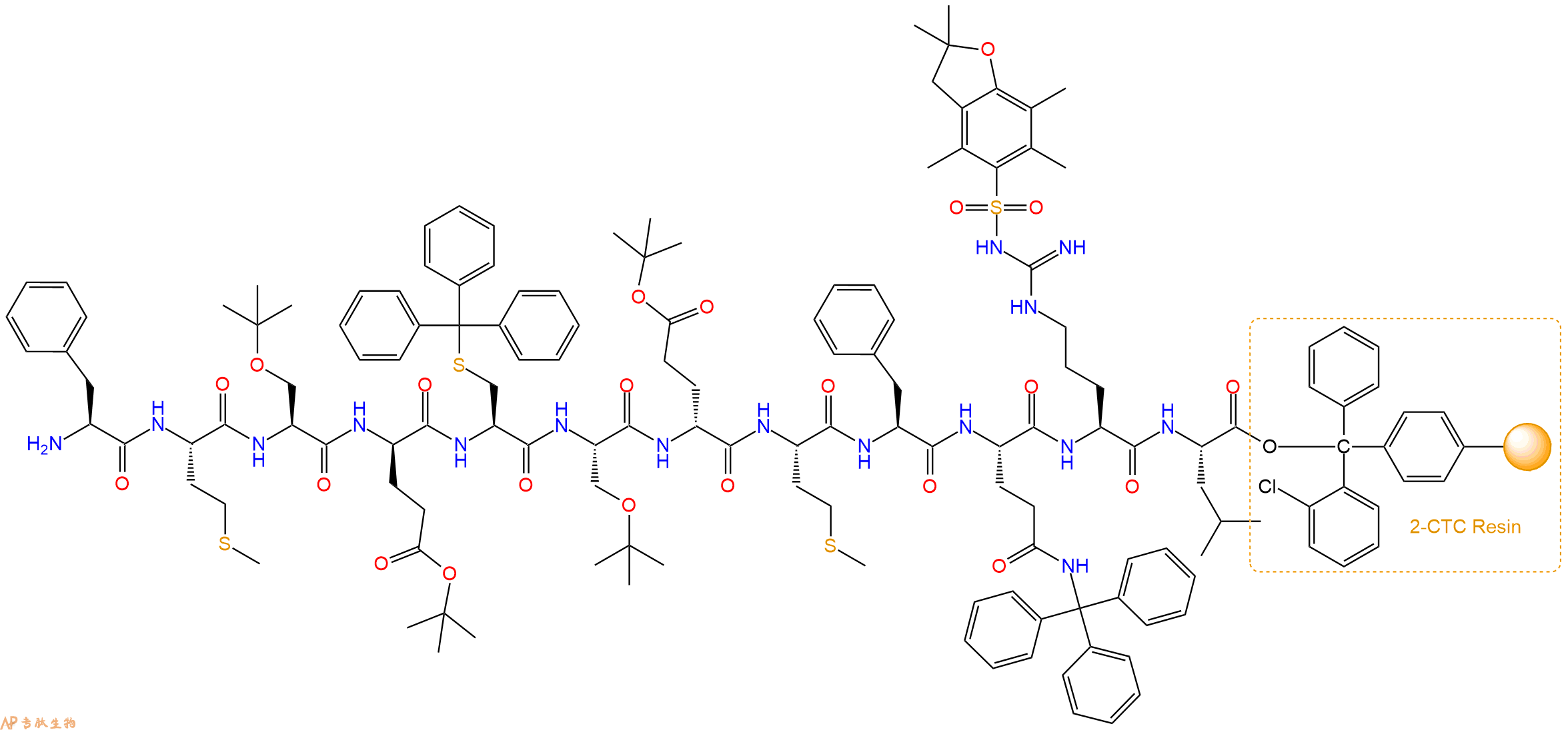 H2N-Met-Phe-Gln(Trt)-Arg(Pbf)-Leu-CTC Resin